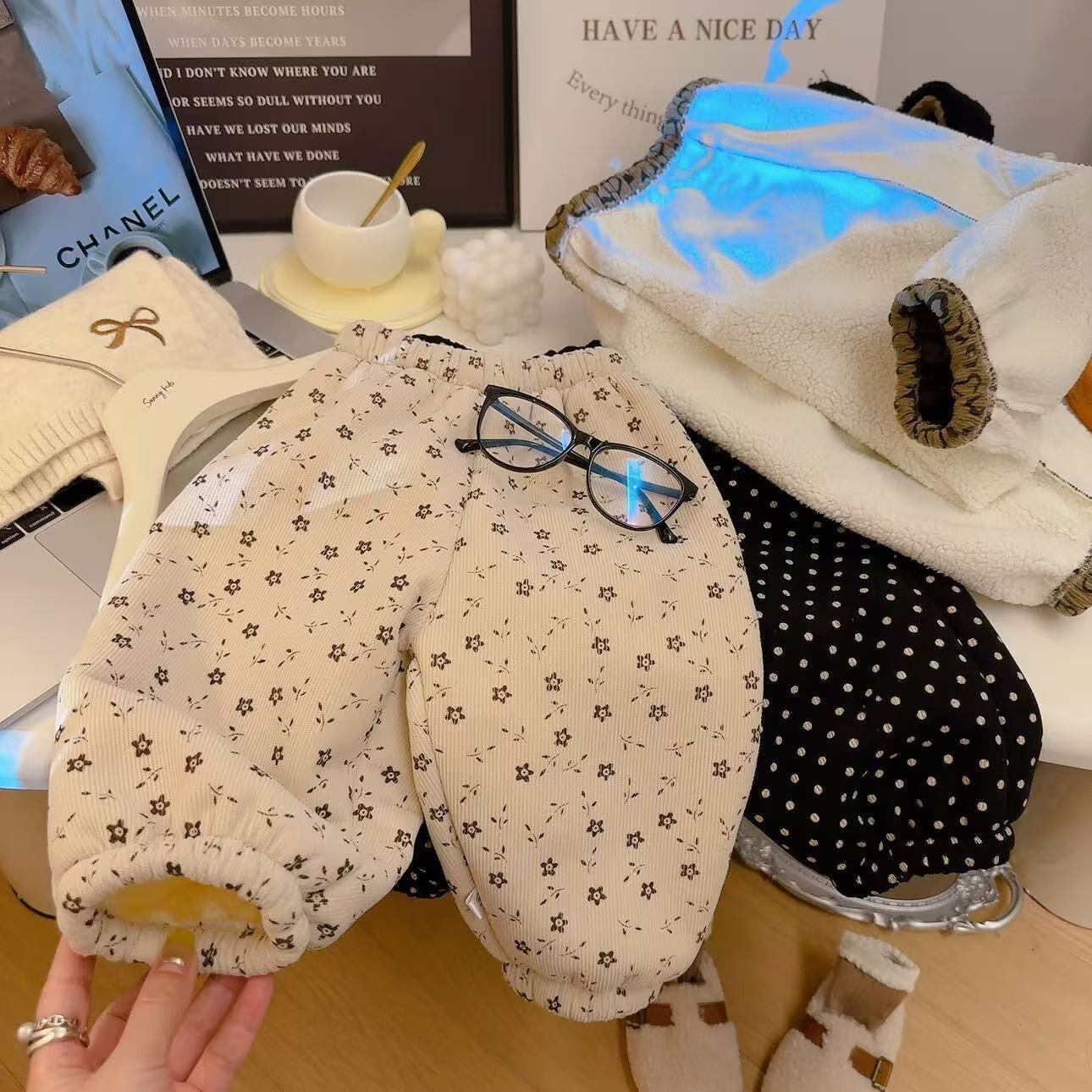 子供服 こどもふく おしゃれ お揃い オソロ リンク リンクコーデ 姉妹 姉妹コーデ かわいい プチプラ 女の子 アイボリー ホワイト 韓国子供服 韓国服 花柄 うさぎ ドット パンツ 裏起毛 起毛 あったか 冬