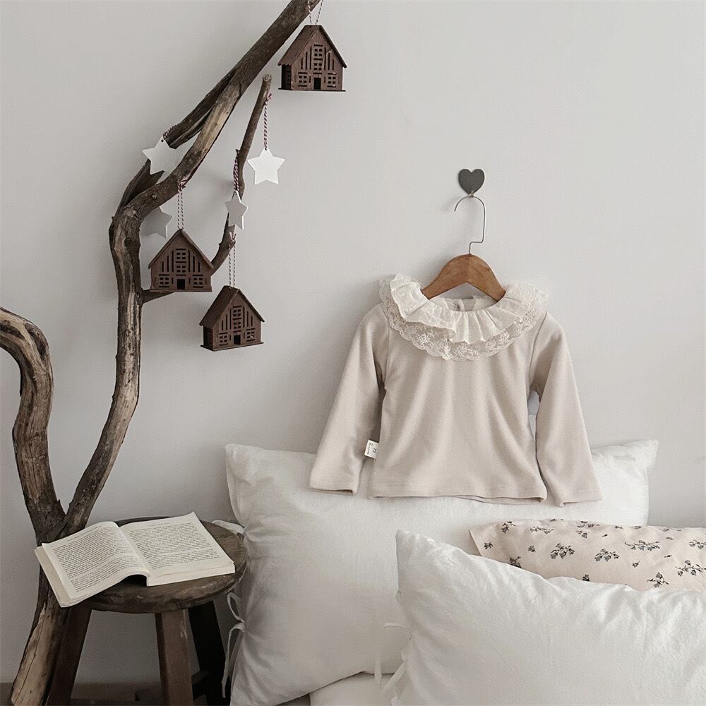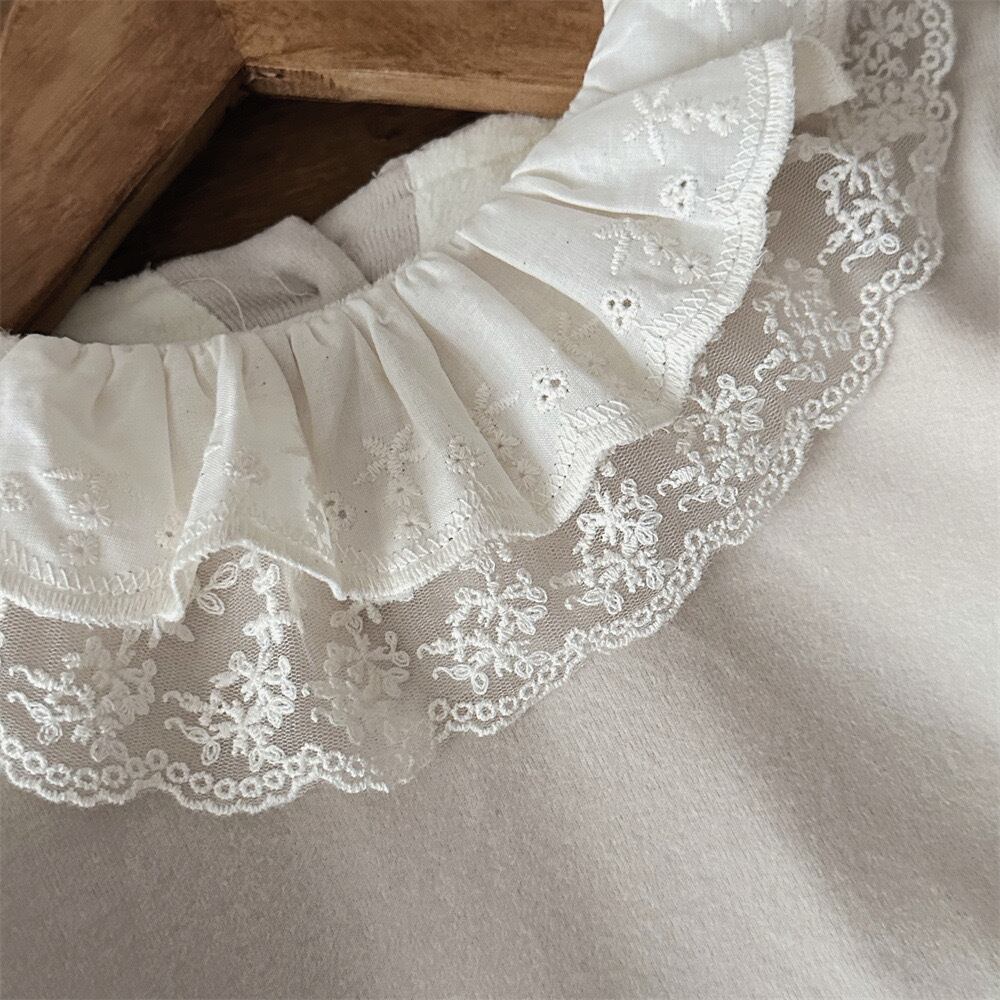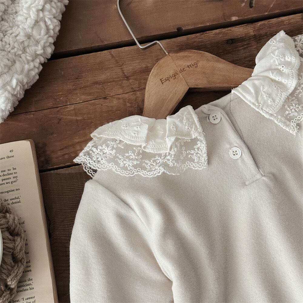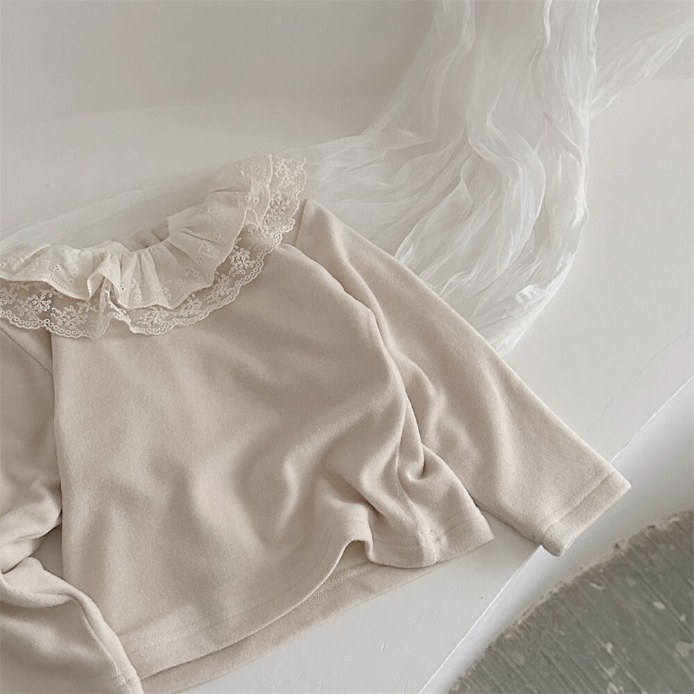 ベビー服 子供服 おしゃれ 姉妹 姉妹コーデ オソロ お揃い リンク リンクコーデ かわいい プチプラ 女の子 ボリューム アイボリー 白 ベージュ レース 襟 トップス