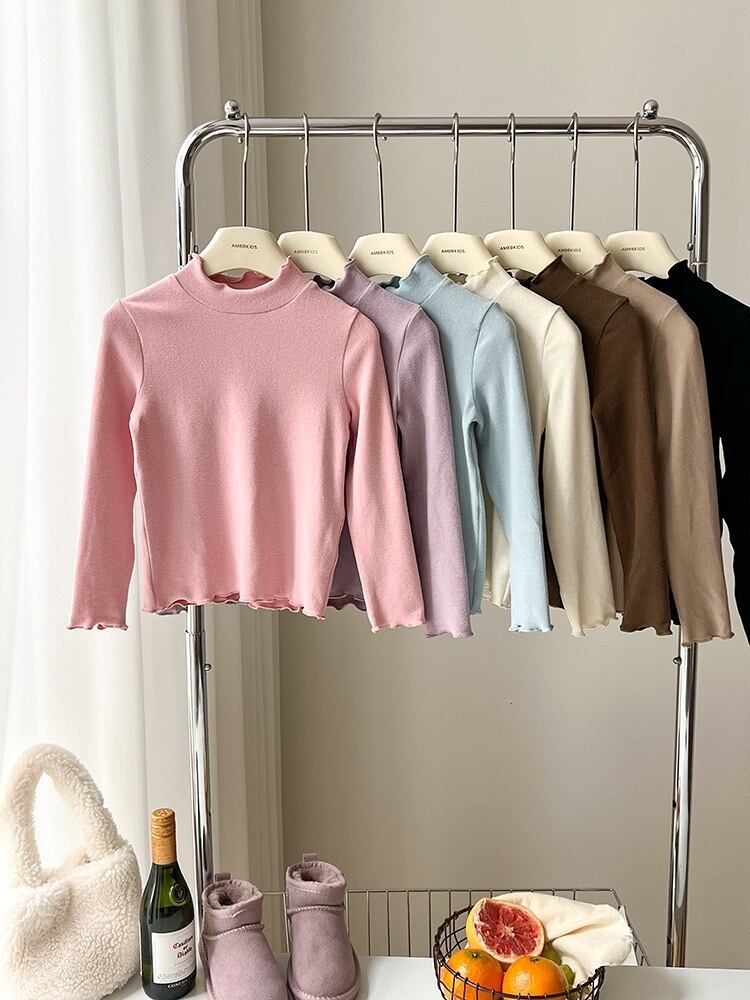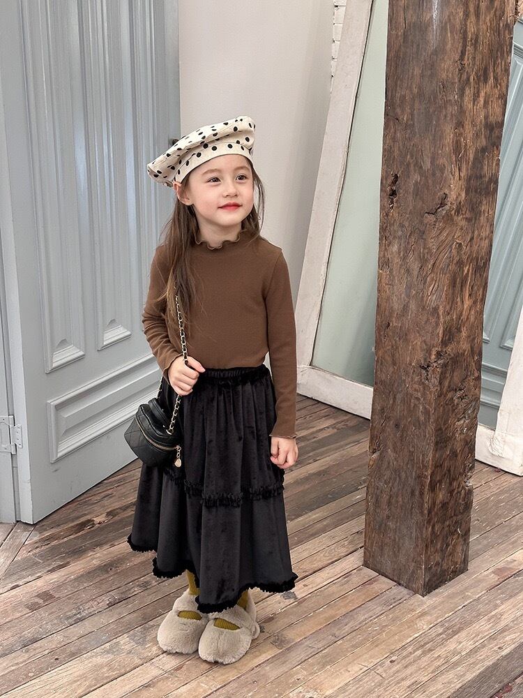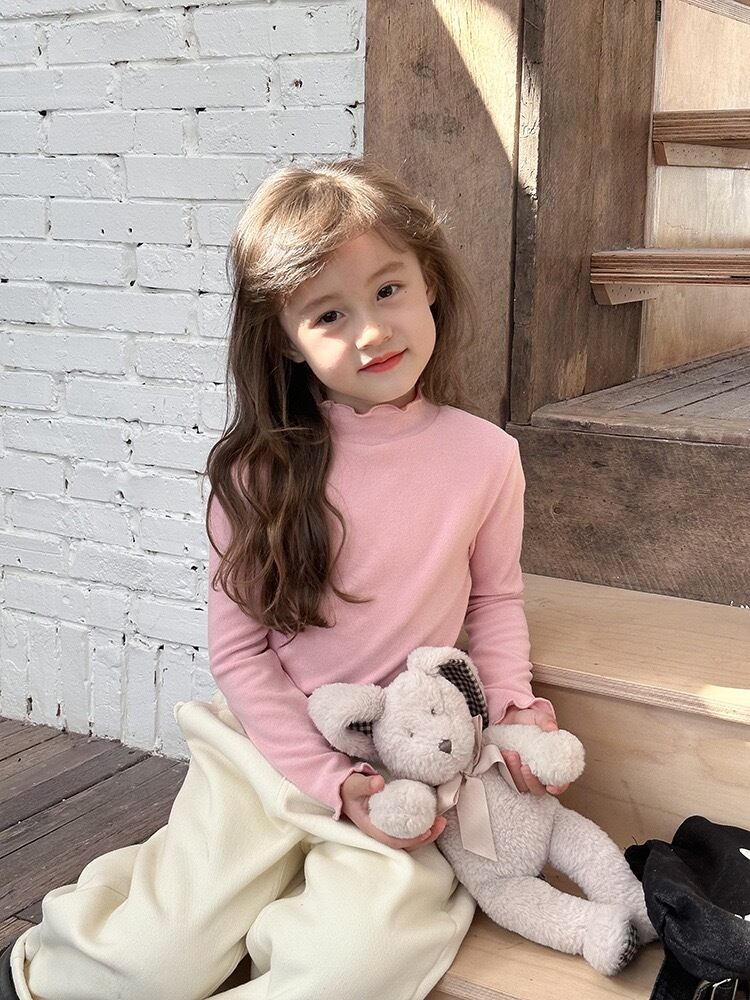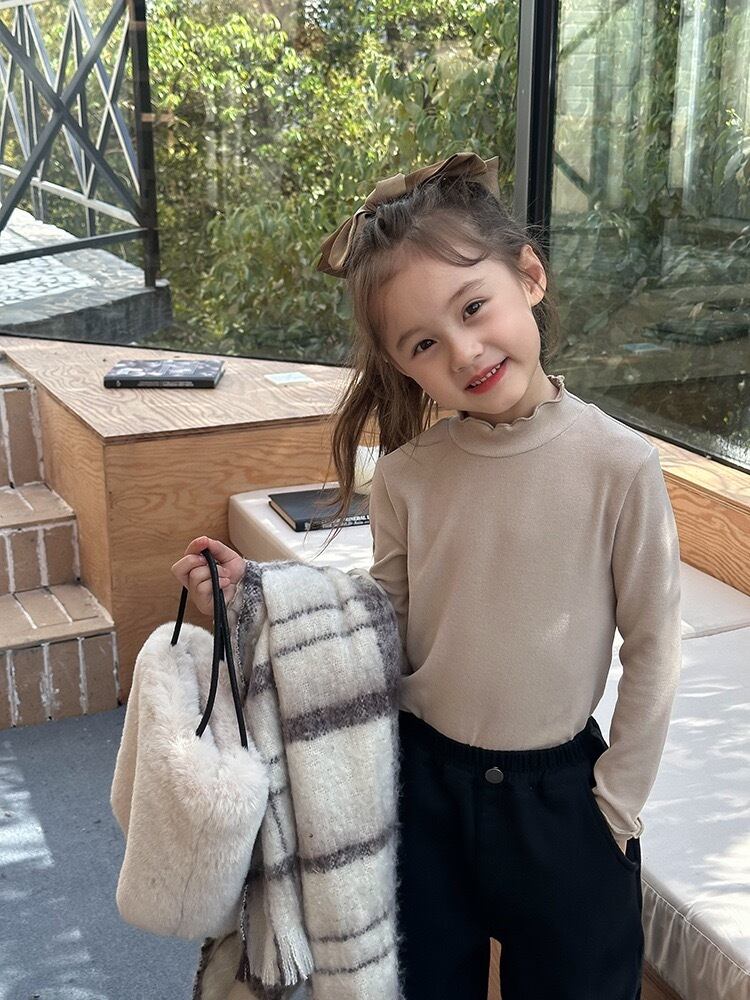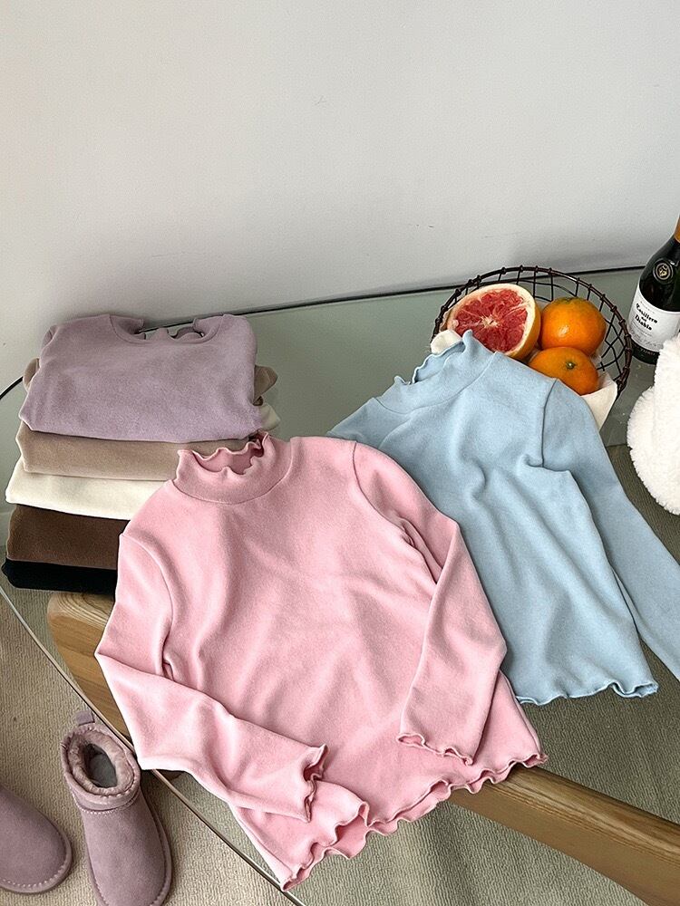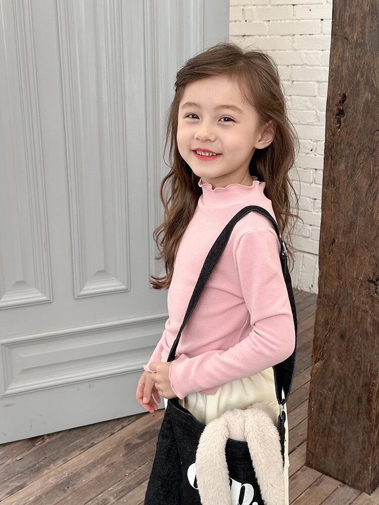 子供服 こどもふく おしゃれ お揃い オソロ リンク リンクコーデ 姉妹 姉妹コーデ かわいい プチプラ 女の子 フリル トップス インナー 防寒 ピンク パープル 紫 ラベンダー ぴんく 黒 ブラック ホワイト ベージュ ブラウン 茶色