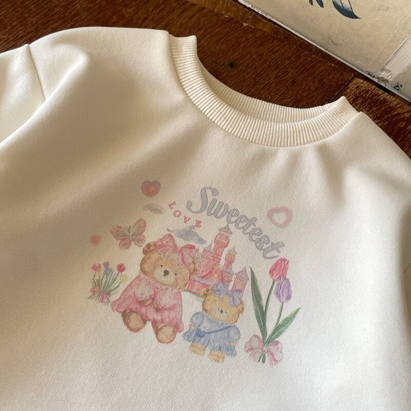 子供服 こどもふく おしゃれ お揃い オソロ リンク リンクコーデ 姉妹 姉妹コーデ かわいい プチプラ 女の子 トップス ドット レース トップス 韓国子供服 韓国服 ポンポン くま柄 くま トレーナー