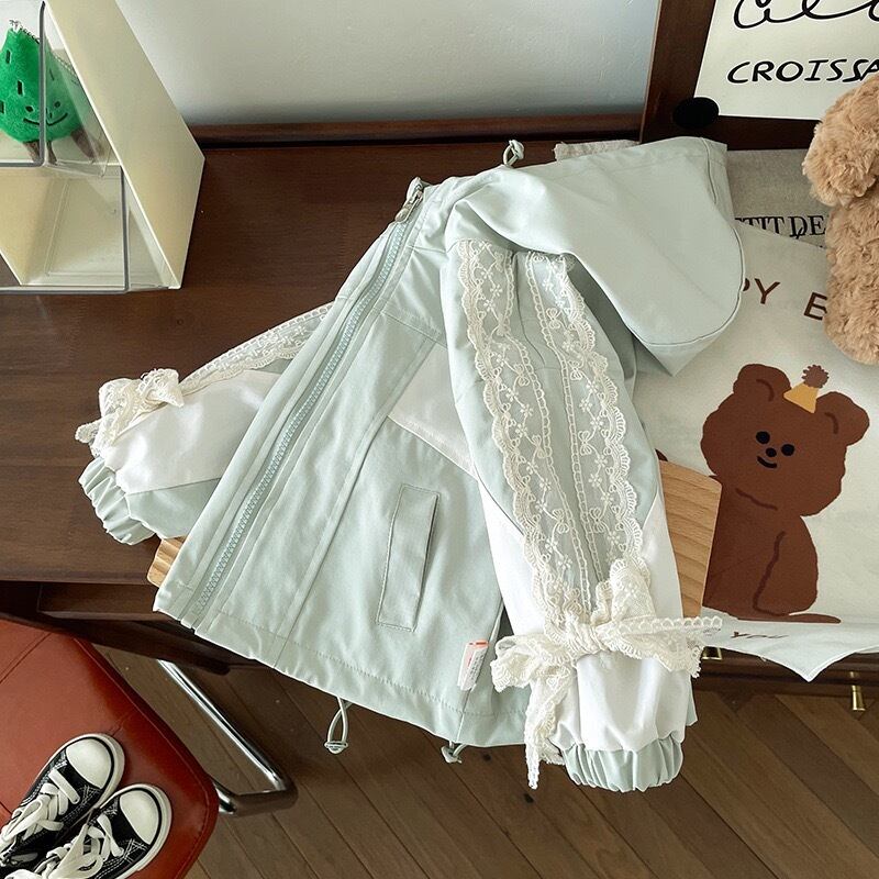 子供服 こどもふく おしゃれ お揃い オソロ リンク リンクコーデ 姉妹 姉妹コーデ かわいい プチプラ 女の子 トップス レース 韓国子供服 韓国服 リボン ミント パーカー アウター ジャンパー ウインドブレーカー