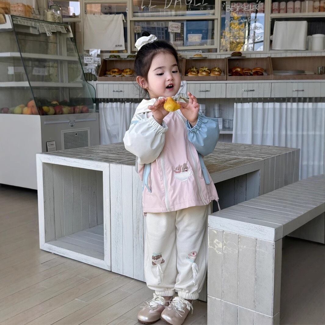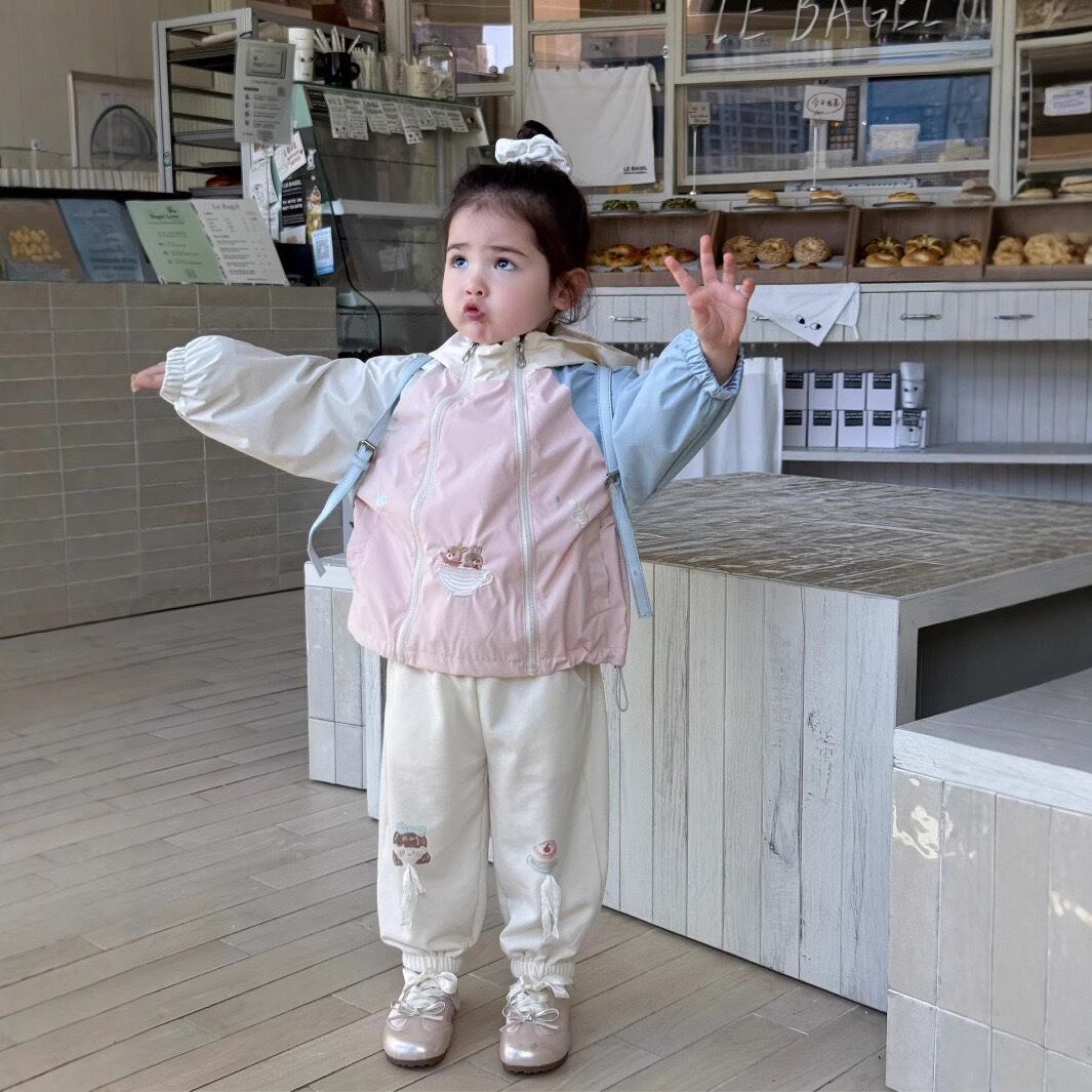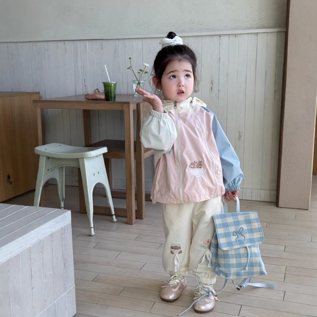 子供服 こどもふく おしゃれ お揃い オソロ リンク リンクコーデ 姉妹 姉妹コーデ かわいい プチプラ 女の子 トップス レース 韓国子供服 韓国服 リボン ミント パーカー アウター ジャンパー ウインドブレーカー カラフル