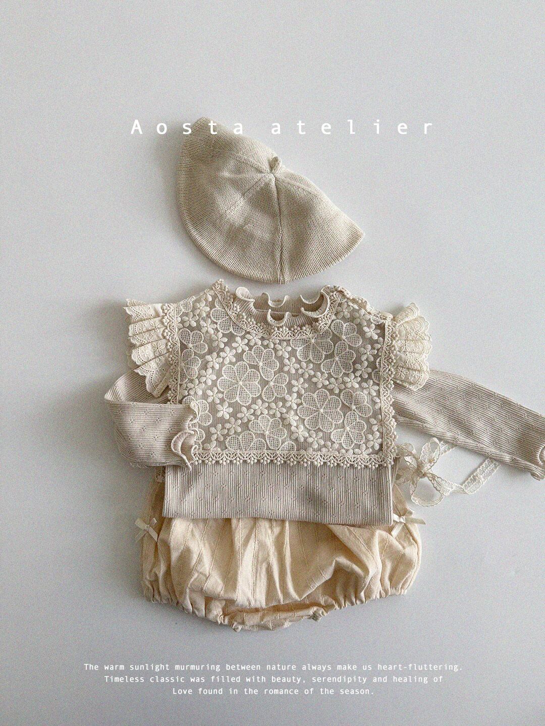 80 90 100 110 70 アオスタ 韓国ブランド リボン フリル 花柄 ベスト