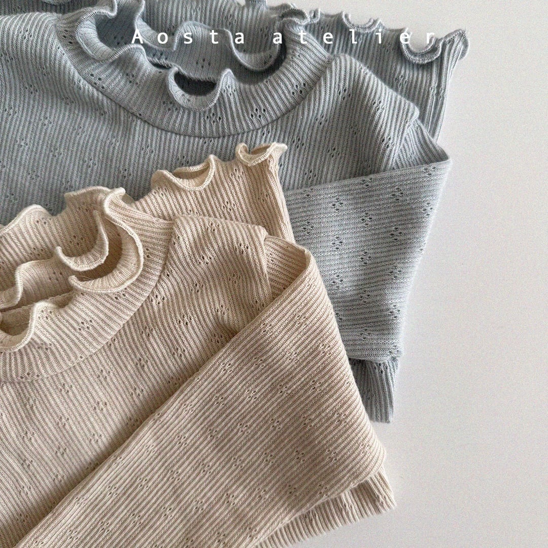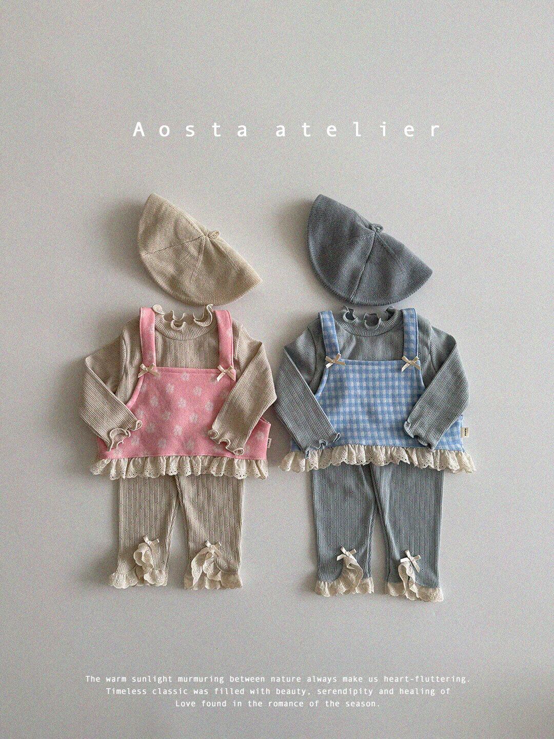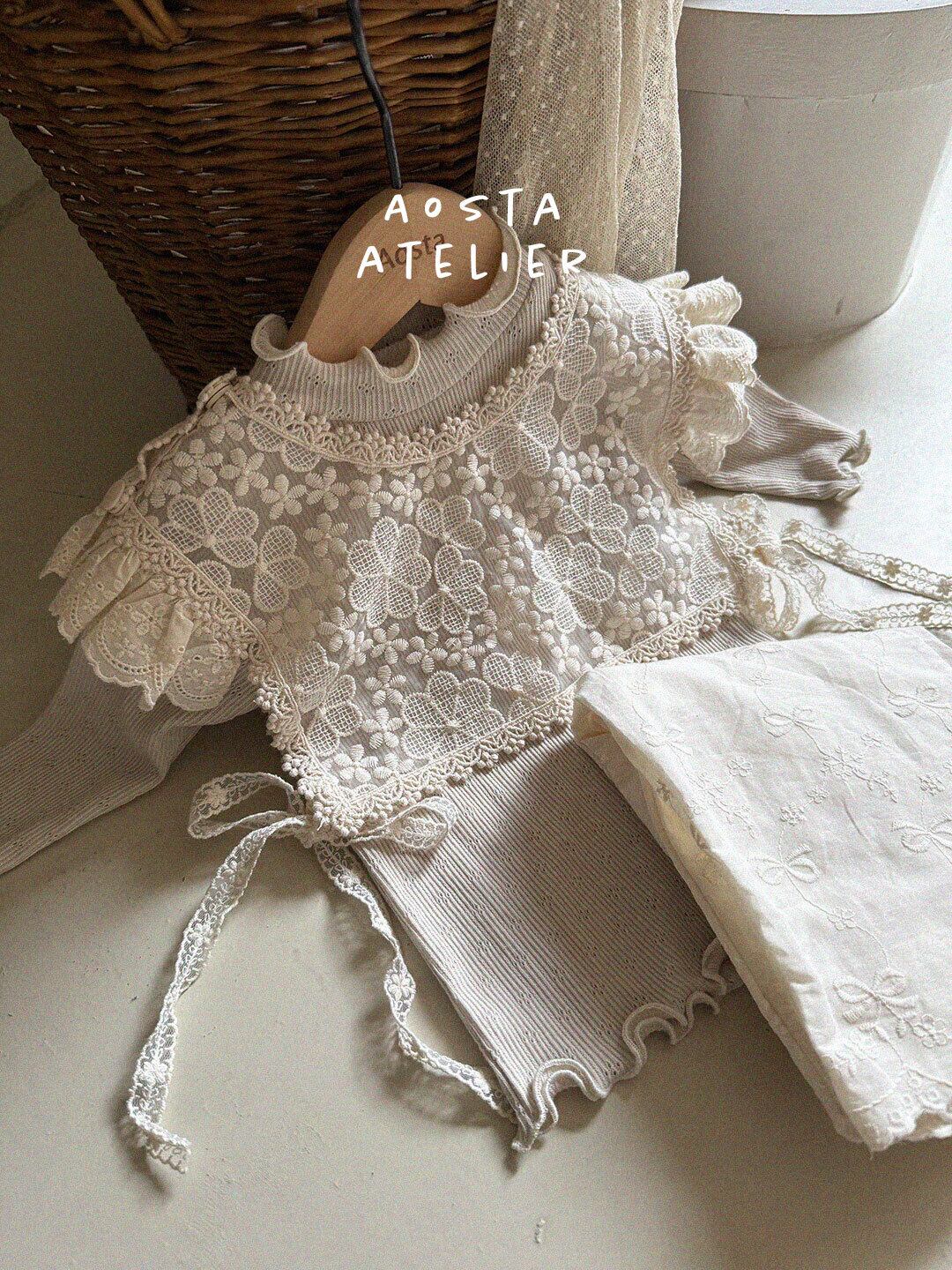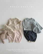 80 90 100 110 70 アオスタ 韓国ブランド パンツリボン フリル 花柄 ブルー カメリア トップス インナー
